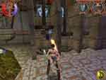 先转动右边的开关,把吊桥放下来。然后转动左边的开关,把正中的电梯降下来,这时候整个平台开始分裂下降,赶快跳到电梯上,按下开关升到上面,跳到吊桥上,干掉对面一个机器人,再跑过去就看到另外一个传送点。这次被传送到一扇大门前。打开门进去,由中间的绳子到达下面,小心避开地上红色的岩浆。在隧道右边找到一扇门,进去消灭一个机器人,然后按下屋子中间的三个开关。隧道里的一个巨型滚轮开始来回滚动了。消灭跟进来的两个机器人,打开门出去向左,避开滚轮,找到另外一个大门。打开门进去。先把下面的敌人打死,再爬绳子到达下面。,按下周围的四个开关。看到中间的一个装置启动了。屋子的另外一边有个传送点。你一靠近它,一只巨爪破墙而出,闪开它,站上传送点。传送到了中央装置附近。在旁边的水池里找到一把蛇形匕首。走到正中,利用兰色光柱离开这里(存盘吧,有时候那光柱会把你推入太空。等它不发射的时候,跳上去,成功的几率比较大)。