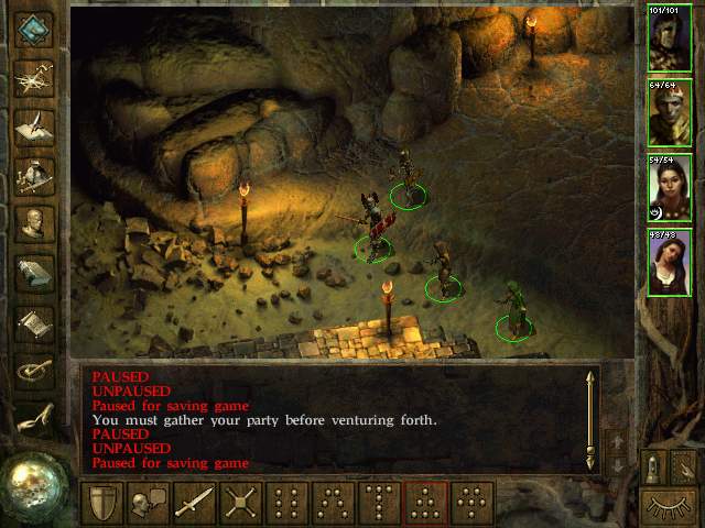 这一层在刚开始时是比较安全的,因为那些牧师和魔法师在一开始并不会攻击你,相反你还可以在里面休息休息,四处拣拣东西(注意,不要试图去橇那些锁着的门,否则会被攻击的)。当你感觉准备的差不多后,就可以回到门口质问那个刚开始时与你交谈的牧师Eldath,这样他就会开始向你发起攻击,这时最好先抓紧时间把他和上方那名魔法师干掉,然后在用消耗战的方法把那些闻讯赶来的牧师和魔法师消灭(小心,他们的剑上有毒)。在这时,你可能会发现敌方有一名召唤师正在不停的召唤各种怪物,这家伙躲在迷宫右方的一个房间里(从原先那扇上了锁的门进去,沿着通道走就可以找到了),干掉他后,就可以回到原先那个可以休息的牧师的房间,在她上面的那间屋子里有着一大群的蛇妖。对付他们依旧是使用火球术一类的大范围魔法较好。在你扫清这一层所有的敌人后,就可以做好准备向最后一层进发了。如果你感觉身上的东西太多,不妨先回Kuldahar卖掉,因为在最后一层还有大量的物品可拣呢。