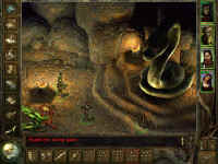 才踏进Dorn's Deep,就遭到了一群食人魔的攻击。消灭他们后,我们来到了洞中。进去后向右走,可以来到魔法师Bandoth的住所,这家伙脾气相当的不好,不过他有买一些不错的物品,所以还是别和他闹翻为好。何况就算你杀了他,也是得不到任何的物品和经验值的。在动口有一条直接向下的小路,那里有大量的蘑菇人()。这些家伙的攻击力虽然不高,可是会让我方队员陷入恐惧的状态,所以最后还是用火球术一类的魔法尽快把他们消灭掉。