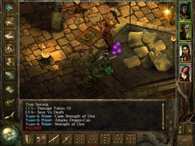 在这曾工有3个出口通往塔顶,先从旅馆上方的出口开始。进去后,你会遇到一些精灵武士和精灵牧师,只要小心些,还不算太难对付(在那些牧师使用某些防护性魔法时,可以考虑用你的牧师的Dispel