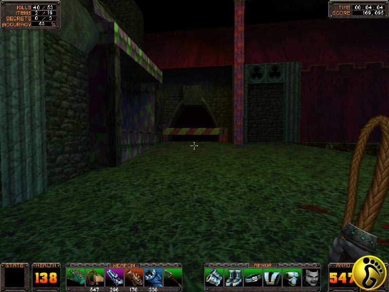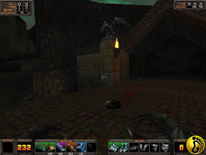 沿着路往右,上了一个斜坡,这里居然有五个扔回旋镖的家伙,把他们都干掉。左边一到门打开了,进去干掉那 个火炮怪人,然后拉下开关。对面的门开了,两个火炮怪人冲了出来,杀死他们以后左边的门开了。进去屋子,走上左边的楼梯,拉开尽头的木门进去,拿到面具。然后上左边的楼梯,上去以后,从右边木舞台下面的通道进去。到了尽头,跳到下面一层,把冲出来的几个小BOSS全部干掉,左边现出一条出路。进去从木板下去,然后转右,又是一番冲杀,把传送窝都干掉以后,左边的一个门就开了。