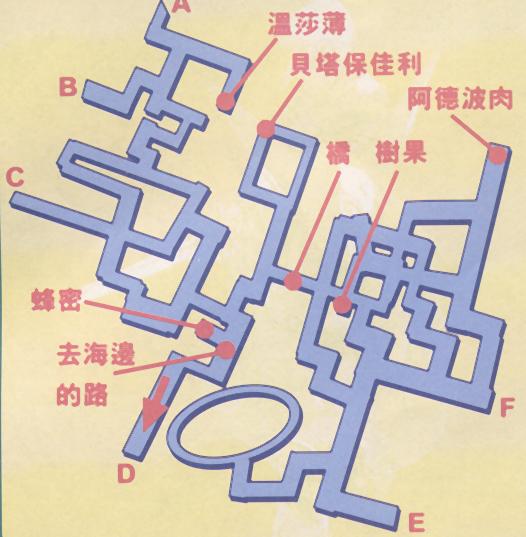 女佣的宠物就在"爱树"旁。四脚鸟是一种十分方便的交通工具,玩家骑着它可以返回先前曾经到过的地方--如王城等。海滨社区恩西艾乐位于海边附近,你只要根据地图的指示,应该很快找到它的正确位置。紫发魔法师就是往在海滨社区恩西艾乐。
