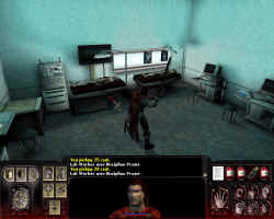 上大街后见到三个妖怪正要杀死一个老头,救下他后得知他也是吸血鬼。接受他加入队伍后,他告诉你认识个叫Dev的电脑高手,应该能帮上忙。转身爬上大街那头的安全梯,来到Dev的家,与之对话,他告诉你去找来“FBI