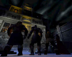 一进门,前方门的右墙上有个按钮,按一下门被打开。出门后直走到底,上楼梯推门入内,在通道尽头的左边是个书房,这幢房子的主人就在那,上前一段寒禅后杀之。回身下楼,大门已经被打开,穿过大厅来到伦敦西部的大街上。从右边下街,有个家伙会不知死活的上来打劫,吓吓他后,同他互换衣服。OK,打扮成现代人了。