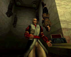 进门后推开右边大门进入大厅,与书桌前的人对话。他回答你一些问题后选择“I think thee we shall go now.”但是Pink还是上前杀了他。在你质问Pink为何这么做时,你以前的随从出现,他道出其实Pink是邪恶吸血鬼一族,他接近你是有预谋的。Pink听闻后施魔法逃走。