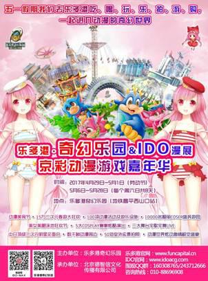 乐多港奇幻乐园与北方IDO漫展强强联合打造北京最大最好玩的户外“京彩动漫游戏嘉年华”暨大型春季动漫COSPLAY游园会,将于2017年4月29日-5月1日在乐多港奇幻乐园隆重举行,同时,5月6日-5月28日期间每个周六日,都有相关动漫活动举办。