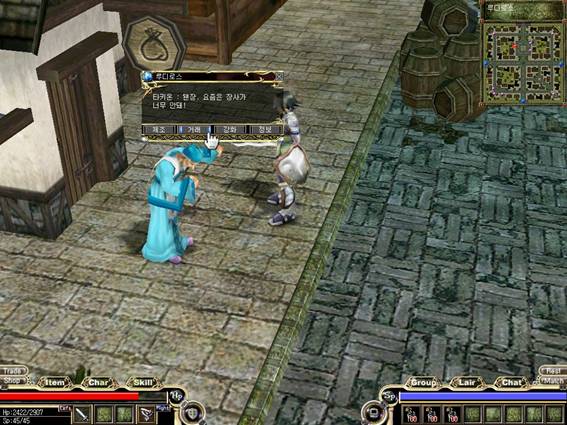 1、 用鼠标左键点击物品商人,选择交易。