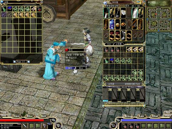 2、将弹出自己的物品窗口和商人的物品窗口,将要购买的物品用鼠标拖放到自己的物品窗中。