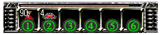 共有6格,物品上方的数字代表该物品在清单中可使用的个数,每格的热键由左到右各为1, 2, 3, 4, 5, 6 ,只要按下数字键即可使用。